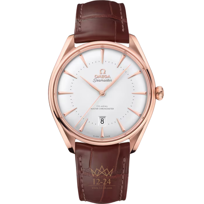 Эта модель диаметром 39,5 мм обладает водонепроницаемостью до 6 бар (60 метров). Среди ее отличительных черт также окошко даты в положении "6 часов" и сферическая заводная головка с рельефным логотипом OMEGA. Часы комплектуются ремешком из коричневой кожи.