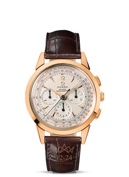 Коллекция OMEGA Museum отражает благородное наследие великой марки. Выбрав среди экспонатов нашего музея выдающиеся образцы возрастом не менее пятидесяти лет, мы выпустили в их честь часы, которые объединяют в себе великолепие традиционного дизайна с современными часовыми инновациями OMEGA. The OMEGA Museum Collection N° 8: «Racend Timer», имеет опалово-серебристый циферблат с нанесенными переводным способом шкалами пульсометра (красная) и тахиметра (синяя). Корпус диаметром 39 мм из 18-каратного розового золота дополнен коричневым кожаным ремешком. В этом сертифицированном COSC хронометре использован коаксиальный часовой механизм, калибр 3201. На полированной задней крышке корпуса имеется специальная гравировка Museum и номер экземпляра в составе ограниченной серии. Часы выпускаются ограниченной серией из 1949 экземпляров.