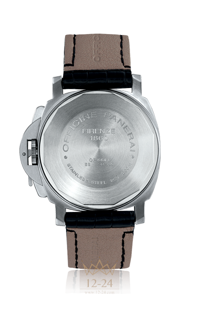 Механизм: механический с ручным заводом, эксклюзивный калибр Panerai OP XVI, 12 линий, 18 камней, 21 600 полу-колебаний/час. Запас хода 48 часов, узор Côtes de Genève, мосты с фирменной отделкой PANERAI.