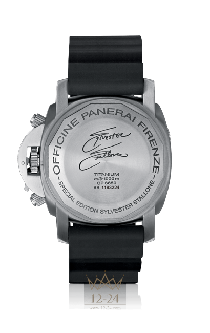 Мужские наручные часы 2005 Special Edition Luminor Submersible Chrono 1000m Slytech с автоматическим заводом выпущены лимитированным количеством в 300 экземпляров. Водонепроницаемый корпус диаметром 47 мм с гелиевым декомпрессионным клапаном выполнен из титана. В часах также есть вращающийся однонаправленный безель с градуированной шкалой для индикации времени. На белом циферблате с зелеными люминесцентными отметками в форме точки и арабской цифрой 12 есть хронограф с тремя индикациями. Корпус дополняет каучуковый ремешок с застежкой из полированного титана. Panerai 2005 Special Edition Luminor Submersible Chrono 1000m Slytech - выбор профессионалов.