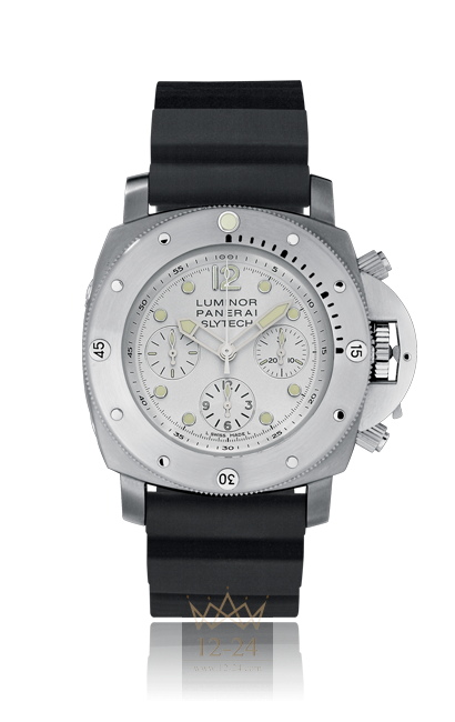 Panerai — известный бренд, преуспевающая компания, у которой были и взлеты, и падения, но ей удалось удержать позиции и остаться лидером в часовой индустрии. Еще одним критерием для профессионала является его имидж, отражающий его компетентность, надежность и решительность. Ведь часто первое впечатление определяет дальнейший ход событий. Стильный дизайн наручных мужских часов 2005 Special Edition Luminor Submersible Chrono 1000m Slytech поможет произвести нужное впечатление и создаст исключительный образ. Отличительной чертой известного бренда Panerai является черный циферблат или, выражаясь языком профессионалов, «черное лицо». Такая особенность не случайна. Черный цвет максимально контрастирует со свечением люминесцентных деталей циферблата, что позволяет следить за временем в любой обстановке. Но Panerai иногда отступает от своей классической тенденции как в случае с моделью 2005 Special Edition Luminor Submersible Chrono 1000m Slytech. Белый циферблат с люминесцентными стрелками — красивый дизайнерский ход, который придает эксклюзивность и благородство. Серия Submersible Luminor специально создана для водолазов и просто для любителей подводного мира и позволяет погружаться на глубину до 1000 метров.