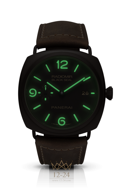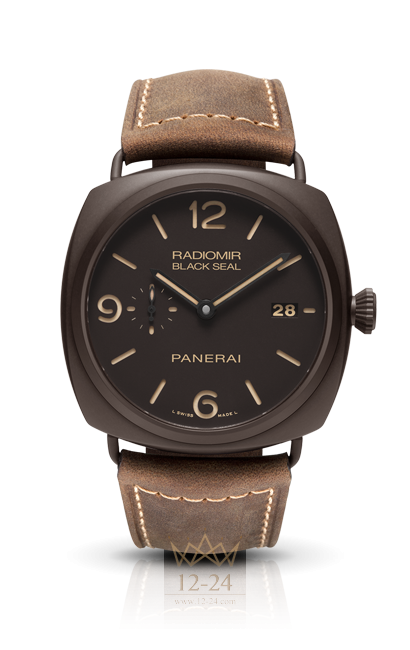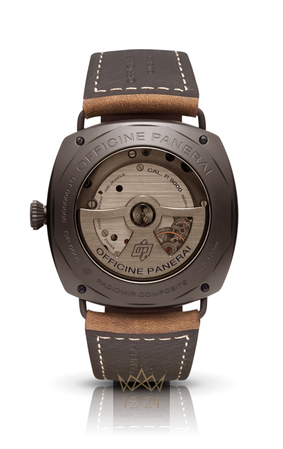 КОМПАНИЯ OFFICINE PANERAI ПРЕДСТАВИЛА КОМПОЗИТНЫЙ МАТЕРИАЛ PANERAI — получаемую с помощью электрохимического процесса ситаллизации алюминия синтетическую керамику. Новинка была презентована на международном Салоне Высокого часового искусства. Этот отличающийся высокой прочностью и легкостью материал сочетает в себе высокотехнологичные характеристики со свойственной часам Panerai спортивной элегантностью. Модель Radiomir Composite Black Seal 3 Days Automatic – 45 мм оснащена выполненным из композитного материала Panerai корпусом Radiomir и циферблатом с указателем даты в положении «3 часа». Отпечатанная на циферблате часов надпись «Black Seal» напоминает о выдающейся истории флорентийской компании. Black Seal было одним из названий тихоходной торпеды, использовавшейся спецподразделениями итальянского Военно-морского флота во время подводных миссий. Через заднюю крышку из тонированного сапфирового стекла можно увидеть оснастивший модель Radiomir Composite Black Seal 3 Days Automatic механизм P.9000 с 72-часовым запасом хода, обеспечиваемым с помощью двух пружинных барабанов, завод которых осуществляется вращающимся в двух направлениях ротором. Калибр P.9000 диаметром 13¾, баланс которого функционирует с частотой 4 Гц, оснащен системой установки секундной стрелки на ноль, что позволяет полностью синхронизировать часы с сигналом точного времени.