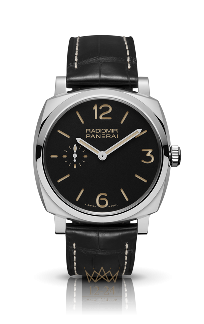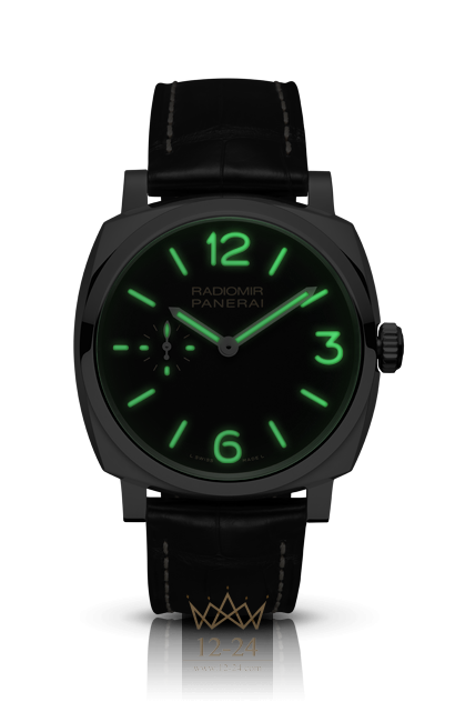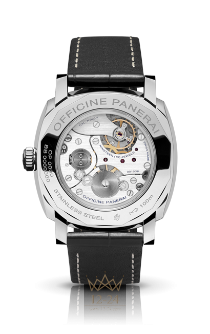 ОРИЕНТИРОВОЧНО В 1940 ГОДУ В ФЛОРЕНТИЙСКИХ МАСТЕРСКИХ PANERAI БЫЛ РАЗРАБОТАН КОРПУС НОВОГО ТИПА, призванный удовлетворить все возрастающие требования специальных подразделений Военно-морского флота Италии. Корпус являлся усовершенствованной версией представленной в 1936 году модели, ныне известной под названием «Radiomir», изначально используемым компанией Panerai для обозначения запатентованного люминесцентного материала, обеспечивающего читаемость показаний в темноте. Новый корпус отличался рядом инновационных разработок, призванных повысить прочность и долговечность конструкции. В корпусе нового типа ушки больше не изготавливались, как ранее, из согнутой и приваренной к корпусу стальной проволоки. Данная конструкция не гарантировала прочность крепления ремешка, который мог оторваться в ходе выполнения моряками спецподразделений особых операций на борту боевого транспортного средства. В представленной в 1940-х годах версии гораздо более крупные и прочные ушки изготавливались вместе с корпусом из цельной стальной заготовки, образуя таким образом монолитную структуру. Также была упрощена система крепления ремешка, что в значительной степени повысило ее надежность. Ранее ремешок огибался вокруг проволочных ушек и прошивался. В новой конструкции непосредственно в самих ушках были предусмотрены отверстия, в которые вставлялся небольшой штырь, предварительно продетый в петлю ремешка. Это более современное решение позволило без особых трудностей заменять кожаный ремешок. Наряду с модернизацией крепления ремешка, дополнительные изменения позволили окончательно усовершенствовать модель корпуса Radiomir, что в свою очередь предопределило разработку корпуса Luminor, выпущенного несколькими годами позже. Внешний «подушкообразный» контур теперь приобрел более мягкие очертания. Заводная головка несколько увеличилась и обрела цилиндрическую форму вместо рифленой. Общая толщина часов увеличилась с 15 мм до почти 17 мм. Таким образом был создан корпус часов Radiomir 1940, который Officine Panerai представляет сегодня в первозданной форме с уменьшенной толщиной. Наполненные энергией новые модели коллекции вызывают особое восхищение, которое могут вызвать только вошедшие в историю шедевры. Часы Radiomir 1940 в стальном корпусе диаметром 42 мм оснащены калибром P.999 с ручным заводом – самым миниатюрным и тонким из широкой гаммы калибров, производимых на мануфактуре Officine Panerai в Невшателе. Механизм P.999 можно увидеть через размещенное на задней крышке окошко из сапфирового стекла. Баланс обладающих 60-часовым запасом хода часов функционирует с частотой 21 600 полуколебаний в час (3 Гц). Модель Radiomir 1940 предлагается с черным ремешком из кожи аллигатора.