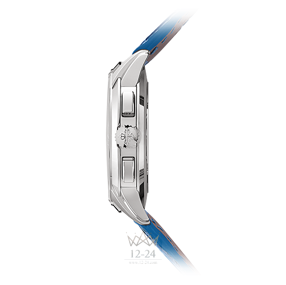 Модель предлагается в 37-миллиметровом корпусе из 18-каратного белого золота на голубом ремешке из кожи аллигатора. Роль часовых меток играют 12 багетных бриллиантов.