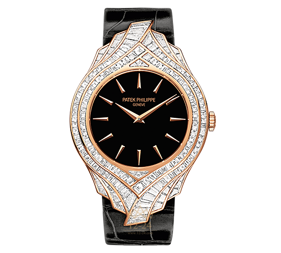 Новинка представлена в корпусе из розового золота 18к, внутри которого находится механизм с ручным заводом РР 215. Балансовая частота механизма 28 800 пк/час, а его запас хода – 44 часа. В механизме используется баланс Gyromax и пружина баланса Spiromax. Центральные стрелки отображают часы и минуты. Цвет циферблата – черный. Корпус инкрустирован 162-мя белыми багетными бриллиантами весом 5.62 ct. Размеры корпуса 34 мм х 8.2 мм. Стрелки изготовлены в форме dauphine. Часы поставляются на черном ремешке из кожи аллигатора с золотой застежкой.