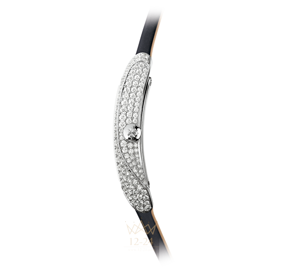 Gondolo Serata пленяют уникальным дизайном и яркой женственностью. Корпус из белого золота обрамлен роскошным безелем, который украшен 243-мя белыми бриллиантами весом 2,54 карата. Лаконичный циферблат из перламутра снабжен лишь миниатюрными стрелками часов и минут, а также двумя часовыми индексами "6" и "12" в стиле Breguet. Модель комплектуется синим атласным ремешком, чья застежка украшена 32-мя бриллиантами весом 0,23 карата.