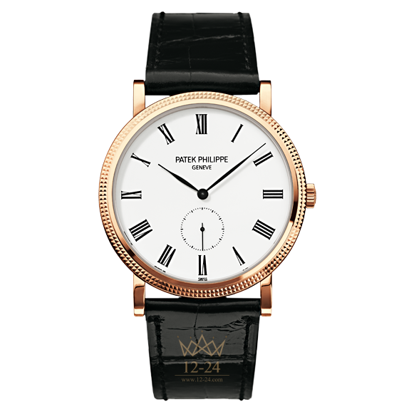 Эта модель с характерной гравировкой Clous de Paris на безеле стала самой популярной моделью, когда-либо созданной в серии, и сегодня считается самой узнаваемой в семействе Calatrava. Тонкий эргономичный корпус выполнен из розового золота. По лакированному белому циферблату с черными римскими цифрами ходят изящные листовидные стрелки. Боковая секундная стрелка вынесена к отметке "6 часов". Сердцем хронометра является калибр 215 PS с ручным заводом. Завершает этот "джентльменский набор" черный ремешок из кожи аллигатора.