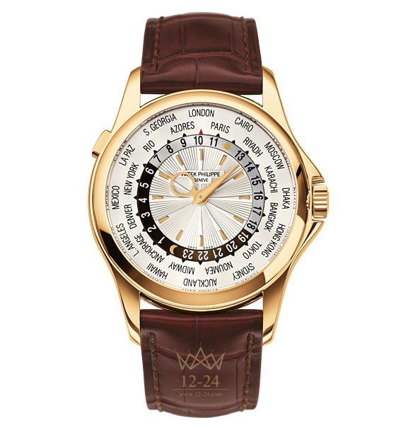 Во время практически любой заграничной поездки путешественникам приходится переводить свои часы как минимум дважды. Но эта операция может стать настоящим удовольствием с этими часами от Patek Philippe. Индикация мирового времени представляет собой два вращающихся кольца, на которые нанесены все 24 часовые зоны. Одно нажатие на кнопку – и текущий часовой пояс окажется в мгновение ока у позиции «12 часов». Дизайн модели навеян 1930-ми годами, в частности, часовая стрелка в виде кольца была взята дизайнерами из оригинальных часов Patek World Time, выпущенных в то время.