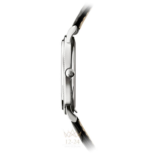 По центру разместились листовидные стрелки часов и минут, а от секундной стрелки создатели решили отказаться. Модель предлагается в корпусе из белого золота с черным циферблатом - интригующее сочетание. Образ завершает черный ремешок из кожи аллигатора.