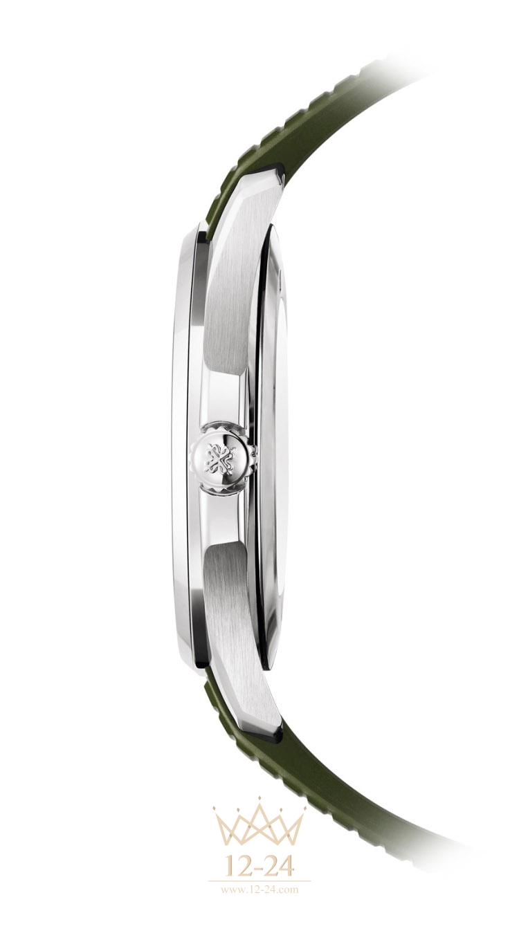 Воплощение современного спортивного шика, мужская модель Jumbo Aquanaut (5168G-010) из белого золота диаметром 42,2 мм предлагается в актуальном и динамичном оформлении цвета хаки. Столь смелая цветовая гамма ассоциируется с захватывающими открытиями и покорением новых горизонтов. На поверхности безеля и корпуса округлой восьмигранной формы матовая отделка сочетается с полированной.