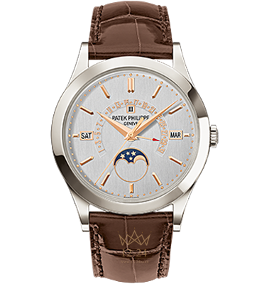 Классическая версия легендарного хронометра с вечным календарем и ретроградной датой. По периметру циферблата расположены три окошка — для отображения дня недели (в положении «9 часов»), месяца (в положении «3 часа») и високосного цикла (под цифрой 12 часов), а также индикатор фазы Луны в нижней части циферблата. В дополнение к уже имеющимся усложнениям, была добавлена ретроградная стрелка даты, которая движется вдоль дуги в 270 градусов и около полуночи последнего дня месяца снова перескакивает на цифру 1.