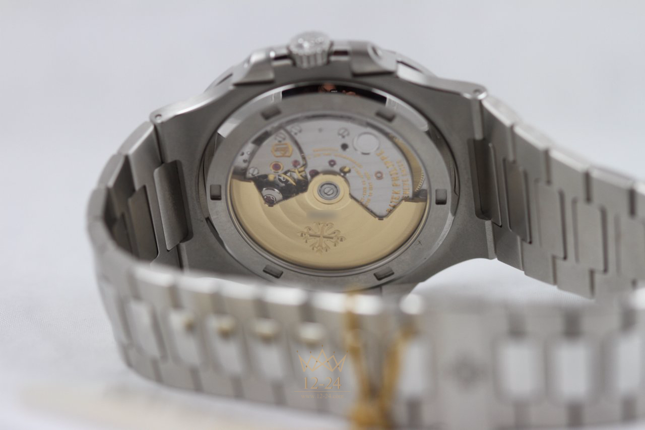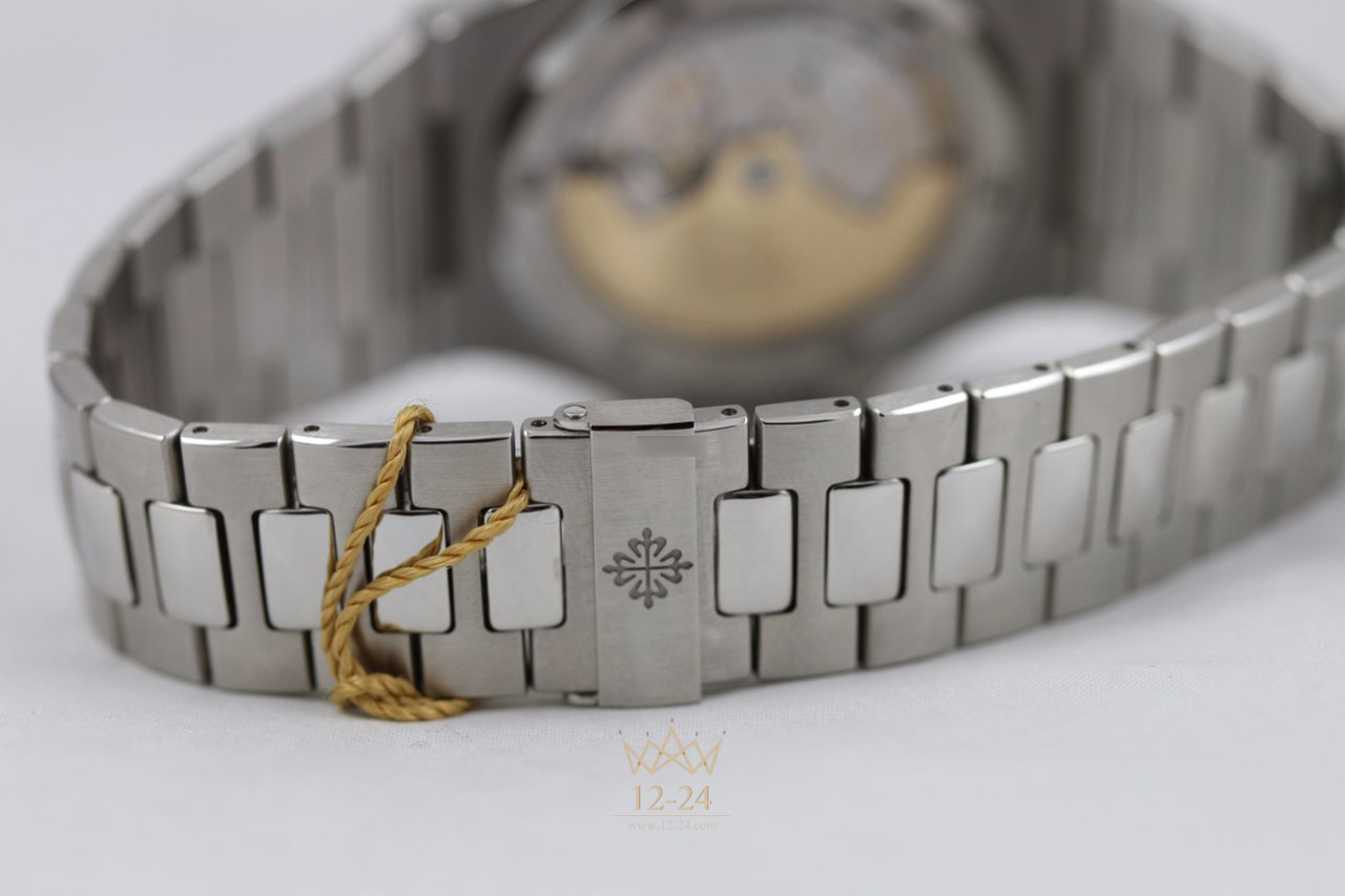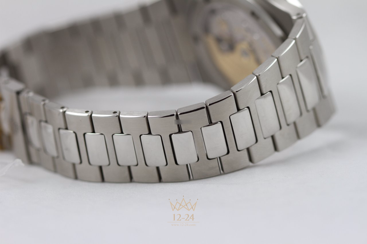 Горизонтальные жалюзи на циферблате, цельнометаллический корпус-иллюминатор в обрамлении скругленного восьмигранного безеля, часовые метки и стрелки в стиле "багет" - неизменные характеристики "наутилусов" в течение нескольких десятилетий.