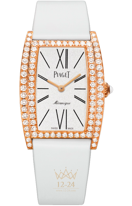 Часы Limelight с корпусом в форме «бочонок», 27 х 38 мм. Корпус из розового золота 18 карат с 86 бриллиантами круглой огранки (около 1,8 карата). Застежка с 13 бриллиантами круглой огранки (около 0,1 карата). Задняя крышка из сапфирового стекла. Ультратонкий мануфактурный механизм с ручным заводом Piaget 438P.