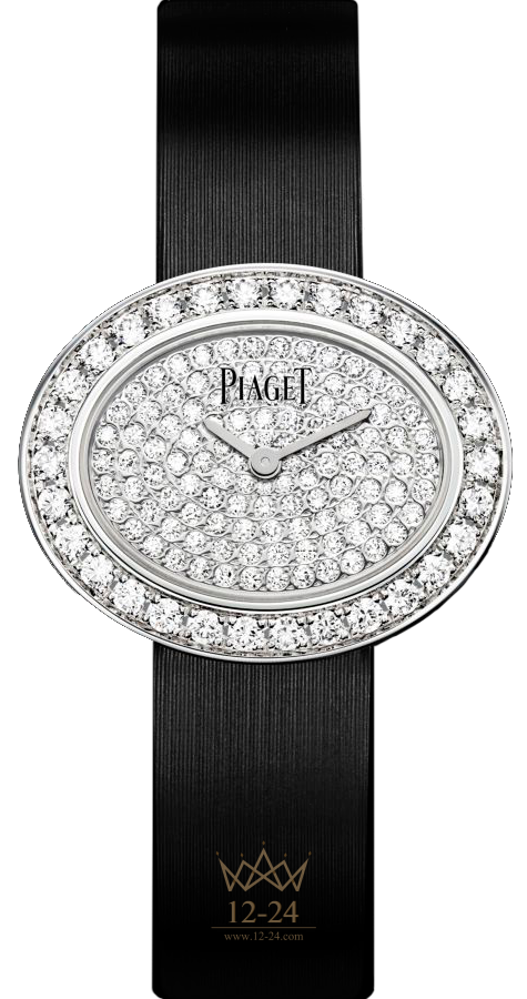 Часы Limelight Diamonds в корпусе овальной формы, 28 х 23 мм. Корпус из белого золота 18 карат с 30 бриллиантами круглой огранки (около 0,9 карата). Циферблат со 111 бриллиантами круглой огранки (около 0,7 карата). Застежка с одним бриллиантом круглой огранки (около 0,01 карата). Кварцевый механизм Piaget 56P.