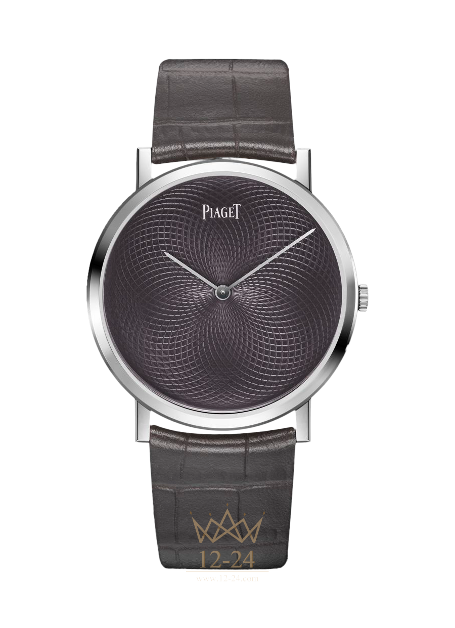 Ультратонкие часы из белого золота. Циферблат покрыт эмалью в технике flinqué. Ремешок из кожи аллигатора серого цвета. Виртуозное владение изысканными художественно-прикладными ремеслами возводит культовые часы Altiplano в ранг произведений искусства, воплотивших в себе многогранное мастерство Дома Piaget. Грифельно-серый циферблат с эмалью, нанесенной в технике flinqué, украшен выполненным вручную изысканным гильошированным узором в виде приносящей удачу восьмерки и покрыт тонким слоем прозрачной эмали Grand Feu. В корпус диаметром 38 мм из белого золота установлен мануфактурный механизм поразительной тонкости – ультратонкий калибр Piaget 430P с ручным заводом и толщиной всего 2,1 мм. Это ценное произведение часового искусства выпущено серией из 88 экземпляров.