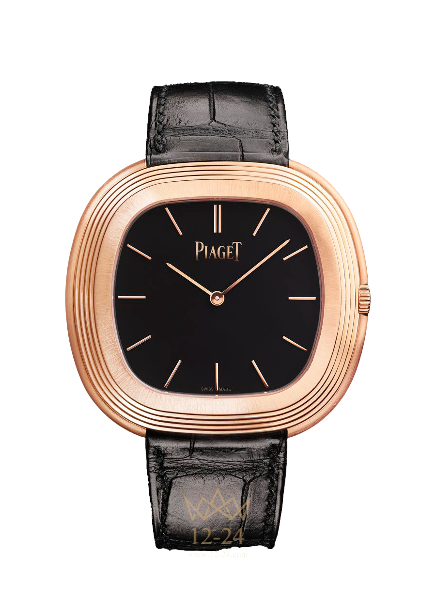 Часы из розового золота с автоподзаводом. Черный циферблат. Ремешок из кожи аллигатора черного цвета. Мужские часы с плавными линиями, корпусом в форме «подушка» и чередующимися полированными и матовыми поверхностями являются современной интерпретацией легендарной модели со смелым дизайном в стиле 1970-х годов. Мануфактурный механизм Piaget 534P с автоподзаводом заключен в тонкий корпус диаметром 45 мм из розового золота. Лаконичный циферблат черного цвета дополнен изящными часовыми индексами и часовой и минутной стрелками из розового золота. Современный дизайн и оформленные в винтажном стиле детали придают этим роскошным часам уникальный и неповторимый характер.