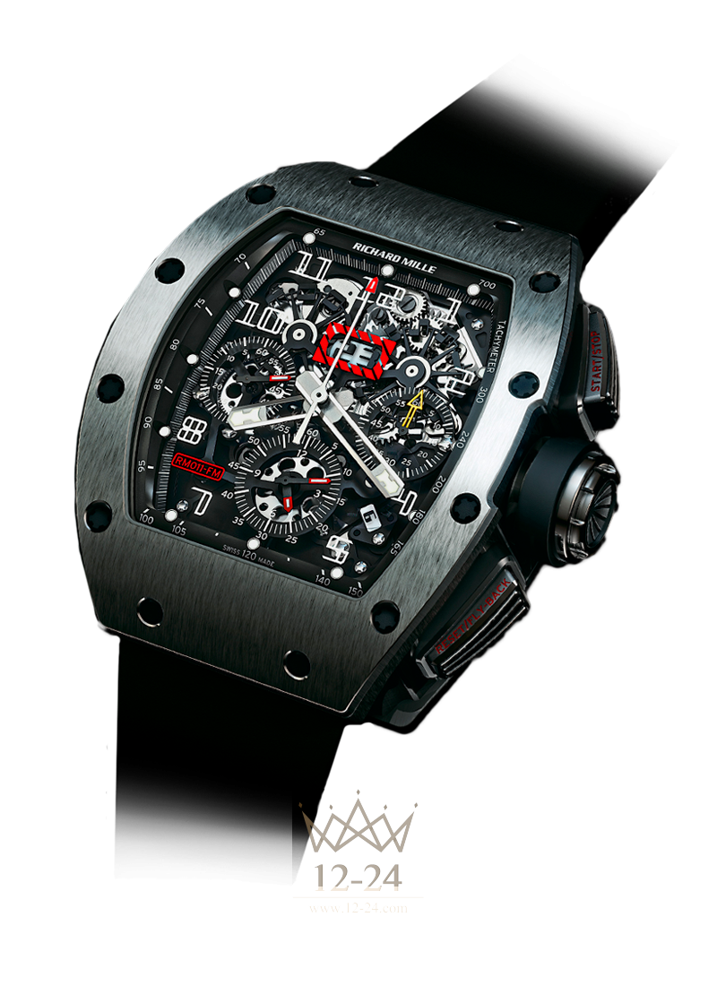 Проектируя новый хронограф, представляющий собой автоматическую версию предыдущей модели, был существенно увеличен корпус RM 004 и RM 008, чтобы разместить внутри ротор с изменяемой геометрией. В конструкции применили самые радикальные решения из всех возможных, а также фирменную концепцию 3D. Использование техники скелетонизирования, чтобы подчеркнуть эстетический аспект. Из соображений эргономики применили рифленые кнопки, по которым не скользят пальцы. Выемчатая заводная головка помогла подчеркнуть умение эффективно использовать пространство. Каждая деталь соответствует не только требованиям функциональности, но и эстетики.