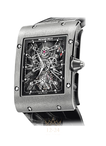 Модель RM 017 представляет собой результат интеграции турбийона в ультратонкий механизм.Этот циферблат нисколько не мешает наслаждаться красотой механики: крупные римские цифры часовой разметки выгравированы прямо на сапфировом стекле. Из эстетических соображений было решено сделать мосты максимально тонкими, с тем чтобы лучше выделить архитектуру калибра и его механическую структуру, хорошо видимую сквозь прозрачную заднюю крышку.