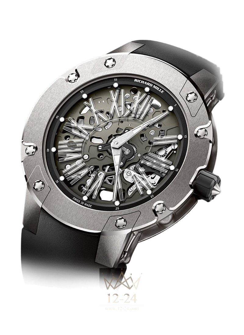 Задавшись целью смоделировать корпус часов без оглядки на прочность и стойкость к экстремальным условиям, которые обычно связываются с дайверскими часами, Ришар Милль вообразил себе спортивную модель, подчиненную геометрии круга. Эргономика этих элегантных часов базируется на округлых линиях тонкого часового корпуса с абсолютно горизонтальным, параллельным платине, безелем.