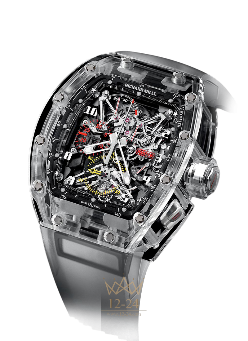 Для того чтобы ремесленник получил право называться Мастером своей гильдии, он должен был подтвердить свои умения, создав достойный шедевр. Когда Ришар Милль с замиранием сердца изучал первый прототип модели, ему вспомнилось, как в детстве он часами завороженно рассматривал трехмерные изображения различных аппаратов, автомобилей и самолетов в разрезе. На них устройство сложных механизмов можно было детально рассмотреть с разных сторон. Поэтому задачу открыть взору устройство сложных часов естественным образом решал прозрачный корпус. Дополнительную сложность представлял собой материал корпуса — сапфировое стекло, которое состоит из кристаллического оксида алюминия и невероятно тяжело поддается механической обработке. Изготовление одного такого корпуса занимает три недели, причем велик риск, что готовый корпус будет отбракован в результате строгого контроля качества. Наши часовые корпуса и без того считаются самыми сложными в производстве, но сапфировый корпус еще раз доказал, что нет пределов совершенству.