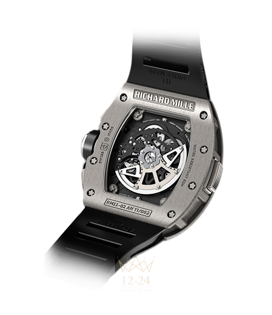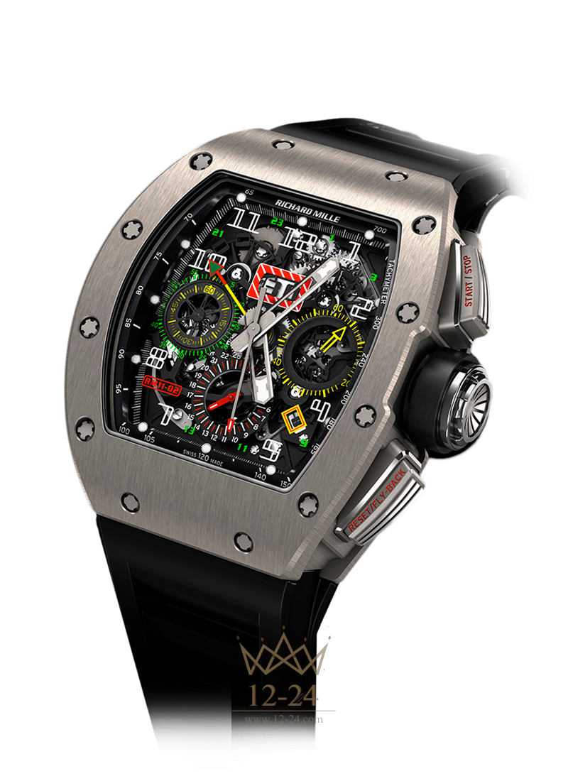 Те, кто уже знаком с оригинальным корпусом RM 011, легко распознают новую модель по дополнительной кнопке в положении «9 часов», предназначенной для настройки времени второго часового пояса. Кнопка особой формы имеет гравировку, равно как и кнопки в положениях «2 часа» и «5 часов», которые служат для запуска/остановки хронографа и обнуления показаний.