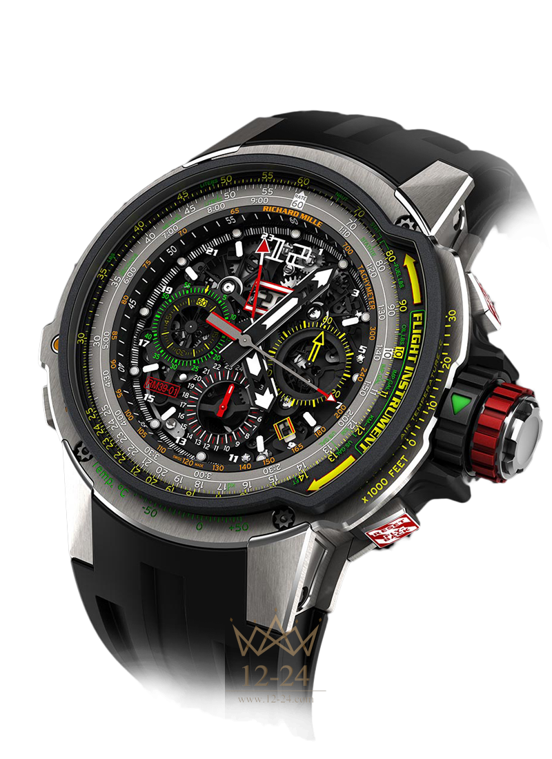 Новая модель RM 39-01 — это практичный быстродействующий инструмент, с помощью которого пилот может отсчитывать один за другим интервалы времени в разных направлениях, что позволяет без потерь времени и без лишних манипуляций с часами получать передаваемые радиомаяками сигналы к взлету.