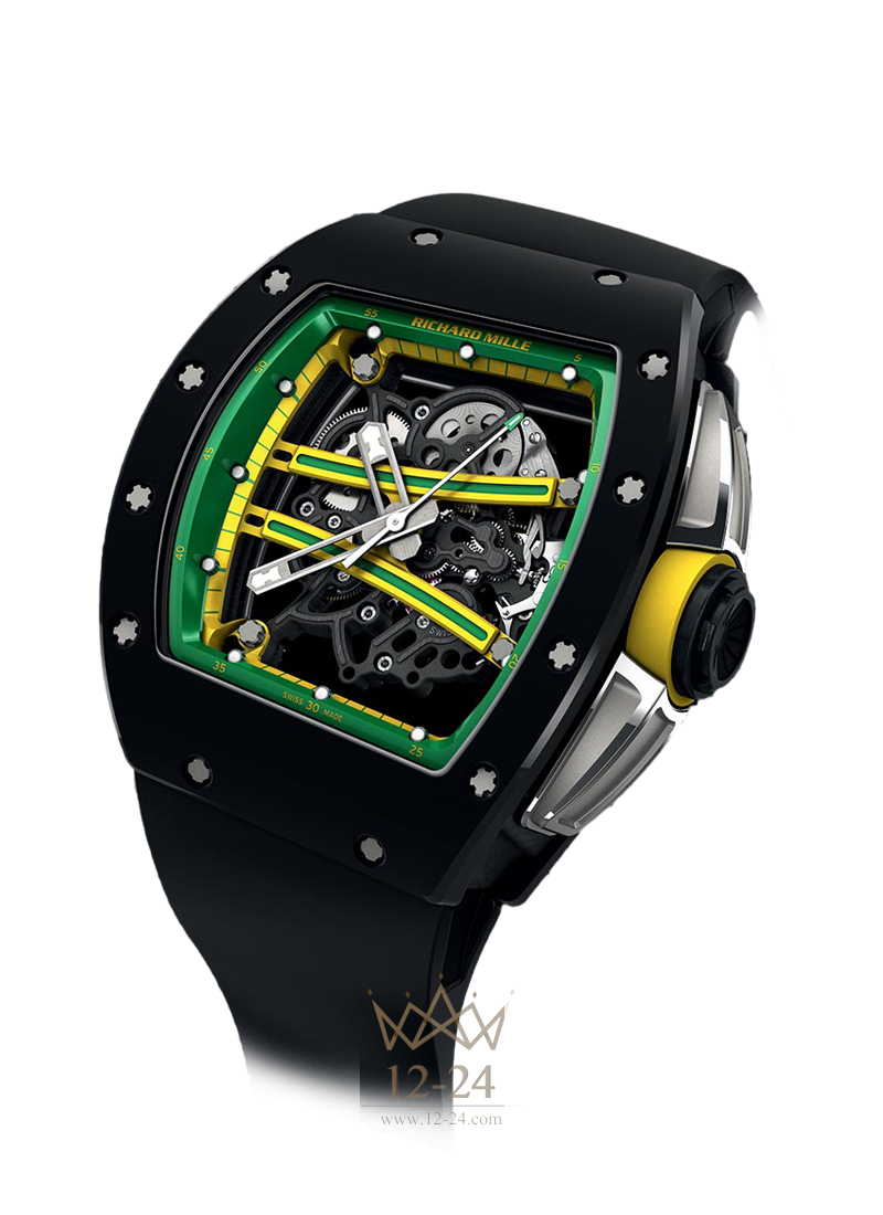 Безель и задняя крышка модели RM 61-01 изготовлены из керамики TZP-N. Калибр RMUL2 представляет собой скелетонизированный высокоточный часовой механизм из титана степени 5 с покрытием PVD и Titalyt®. Прочность часов подчеркивают большие выступы по бокам заводной головки, защищающие ее от случайных повреждений при занятиях спортом или активными видами деятельности.