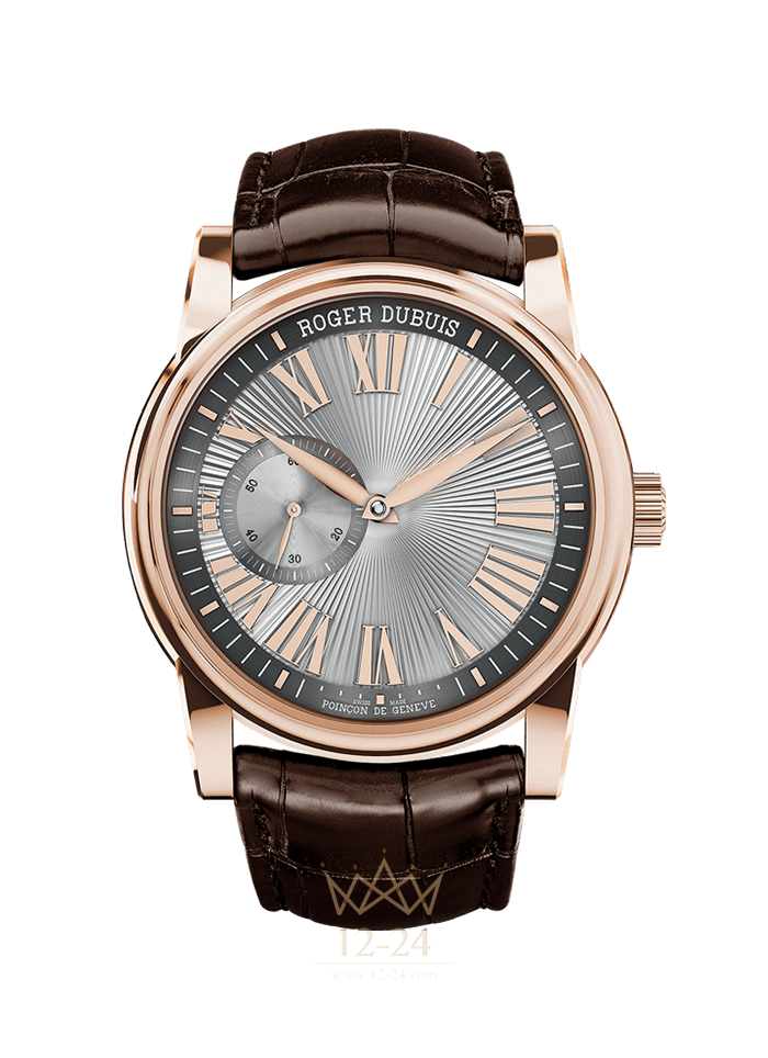 Металлизированная подпись Роже Дюбюи на сапфировом стекле в задней крышке