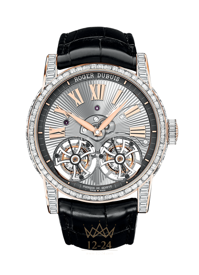 Металлизированная подпись Роже Дюбюи на сапфировом стекле в задней крышке