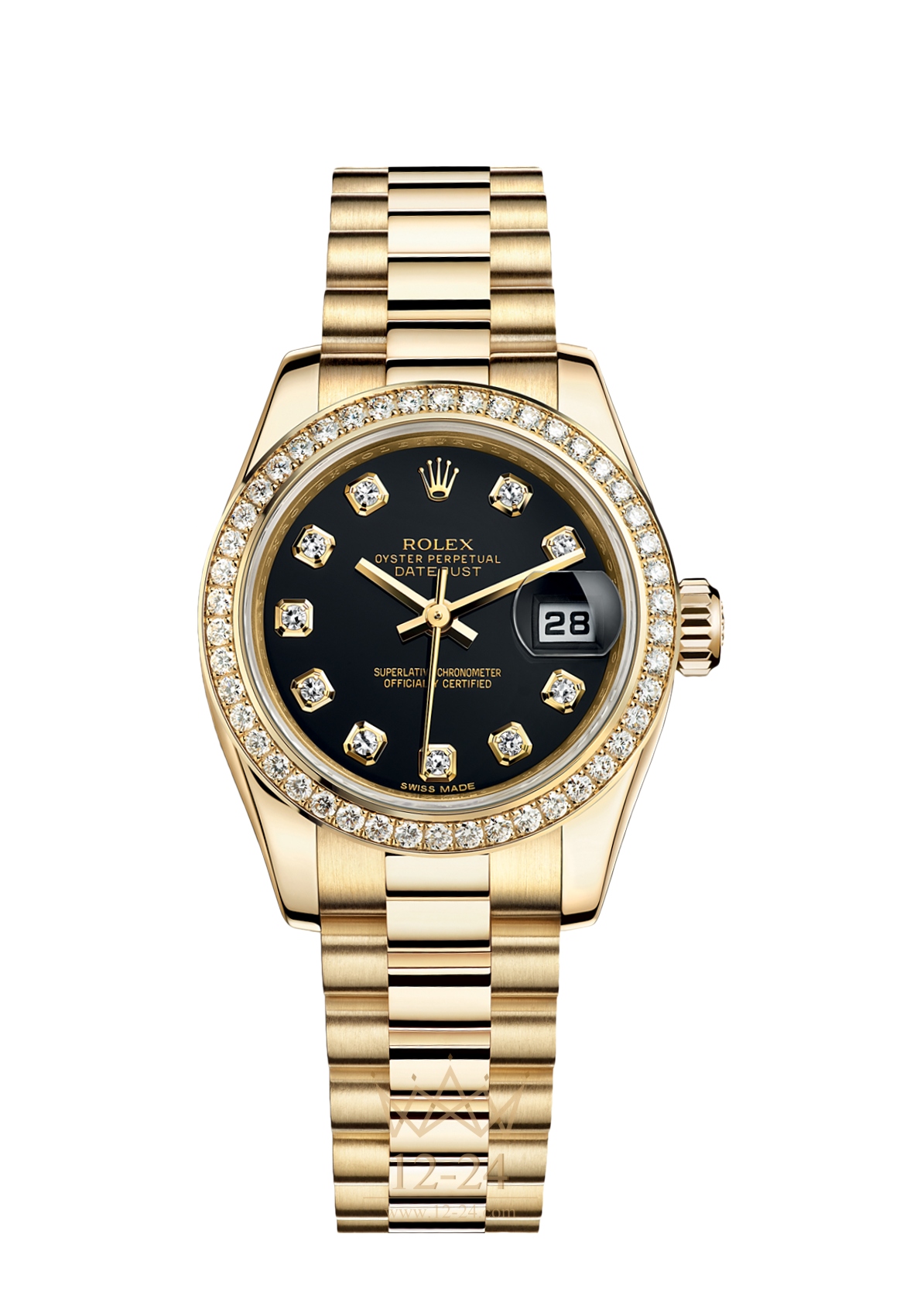 В небольшом корпусе модели Lady-Datejust диаметром 26 мм заключены все качества знаковой модели Rolex Datejust. Неподвластная времени элегантность этого сокровища на каждый день подчеркивается волнующими и соблазнительными расцветками циферблатов, благородством материалов и сверканием бриллиантов.