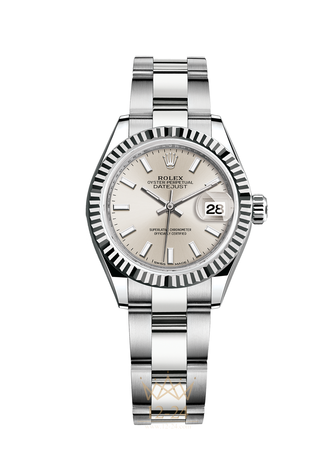 Как и все часы Rolex, модель Lady‑Datejust 28 прошла сертификацию на присвоение статуса сверхточного хронометра Rolex, критерии которого были пересмотрены компанией в 2015 году. Этот уникальный статус свидетельствует о том, что часы успешно прошли комплекс испытаний, которые компания Rolex проводит в своих собственных лабораториях на основе специально разработанных критериев, более строгих по сравнению с общепринятыми стандартами хронометрической точности. Для проверки показателей точности хода часов в процессе эксплуатации компания Rolex тестирует часы в собранном виде, что позволяет гарантировать их исключительные характеристики в ходе ношения в том, что касается точности, водонепроницаемости, автоматического подзавода и запаса хода. Средняя погрешность хода сверхточного хронометра Rolex после установки механизма в корпус составляет порядка -2/+2 секунды в день, что вдвое превышает критерии показателей точности oфициально сертифицированного хронометра. Символом статуса сверхточного хронометра является зеленая печать, которая присутствует на всех часах Rolex. Кроме того, ее наличие предполагает международную пятилетнюю гарантию на все модели.