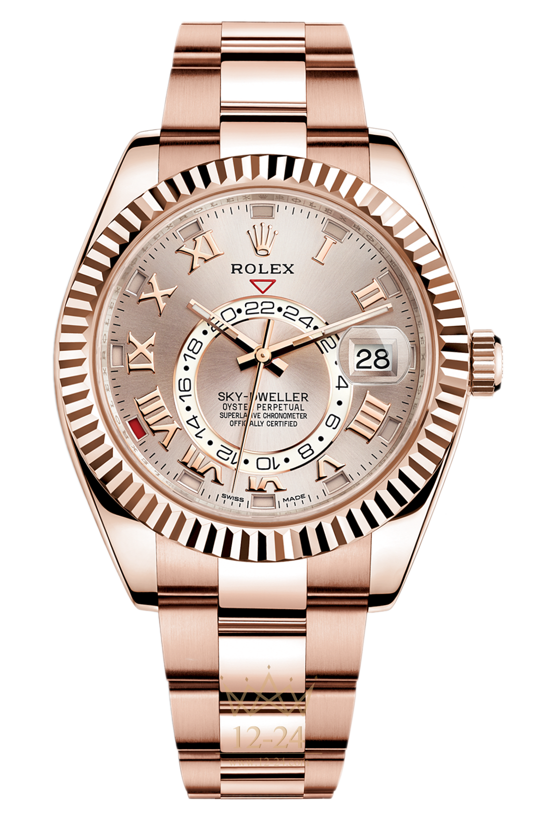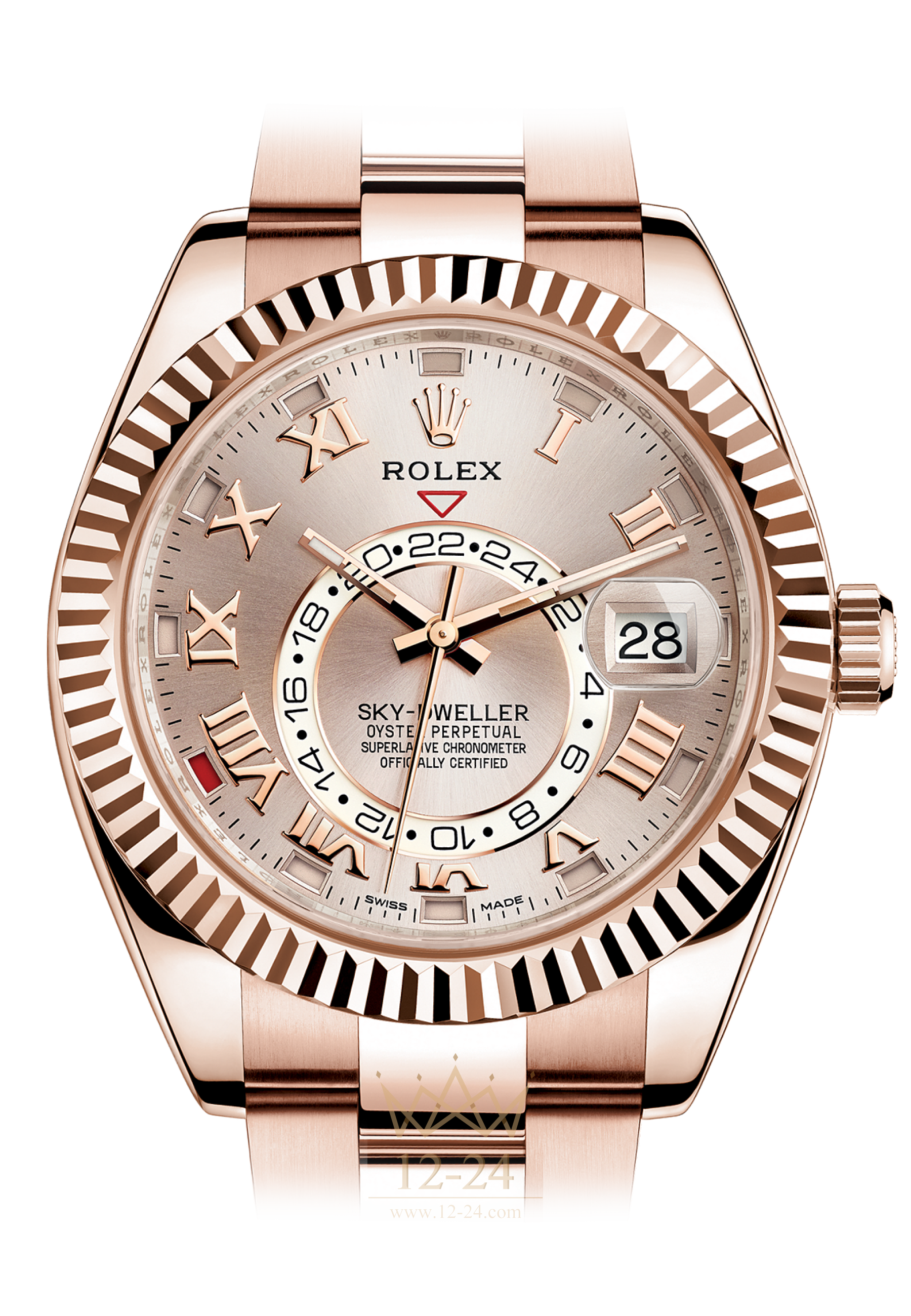 Центральные часовая, минутная и секундная стрелки. 24-часовая индикация времени на смещенном от центра циферблата диске. Второй часовой пояс. Годовой календарь в положении «3 часа» с возможностью быстрой установки и регулировки даты. Индикация месяцев в 12-ти окошках по окружности циферблата. Возможность остановки секундной стрелки для выставления точного времени