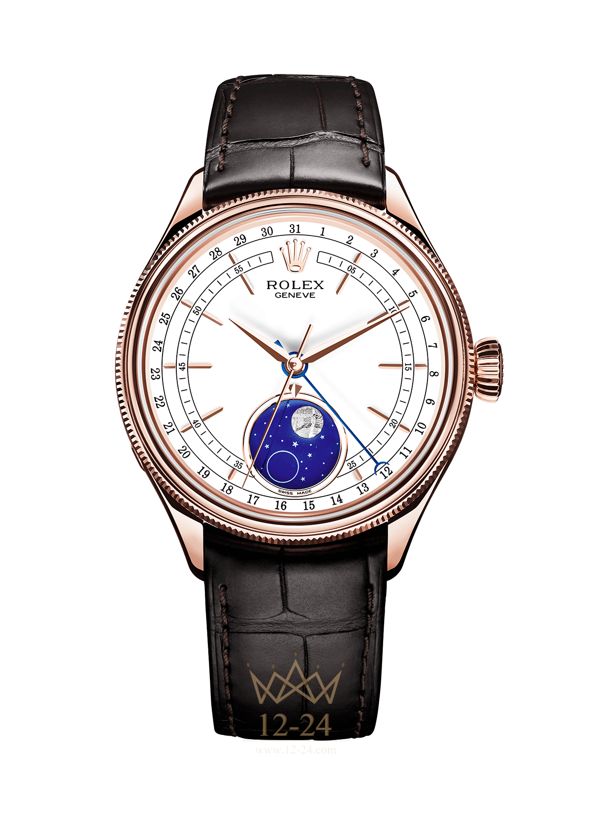 Кроме того, часы Cellini Moonphase располагают функцией календаря с центральной стрелкой, полумесяц на кончике которой показывает текущую дату по окружности циферблата. Эта новая модель приводится в движение механизмом с автоматическим подзаводом, полностью изготовленным мастерами Rolex. В механизм интегрирован запатентованный модуль лунных фаз, астрономическая точность которого гарантирована в течение 122 лет. Часы Cellini Moonphase предлагаются с браслетом из коричневой кожи аллигатора с застежкой Crownclasp из 18‑каратного золота Everose с раскладывающейся пряжкой, впервые примененной для модели часов коллекции Cellini.