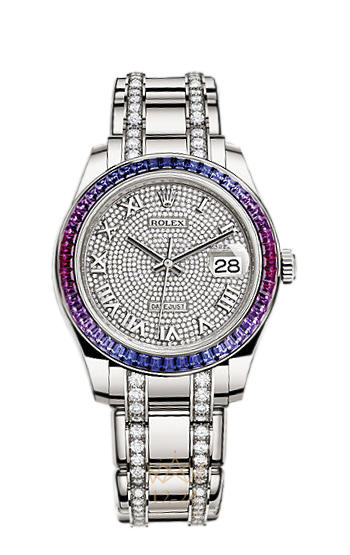 Часы Pearlmaster являются жемчужиной ювелирной коллекции Rolex. Модель Pearlmaster с плавными округлыми линиями отличается уникальным богатством циферблатов и изяществом отделки драгоценными камнями: бриллиантами, сапфирами и рубинами. Эти часы изготавливаются исключительно из 18‑каратного желтого, белого золота или золота Everose, отлитого Rolex в своем собственном плавильном цеху.