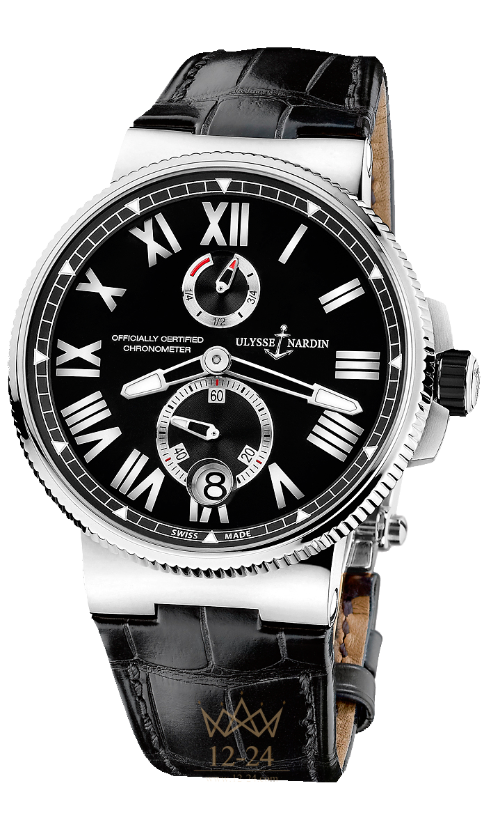 НАРУЧНЫЕ ЧАСЫ Marine Chronometer Manufacture 45мм Калибр UN-118 Автоподзавод малые секундные стрелки и индикатор запаса хода Корпус из титана/стальной корпус . 45мм водонепроницаемость 200 m Чёрный циферблат римские цифры ремешок из кожи аллигатора