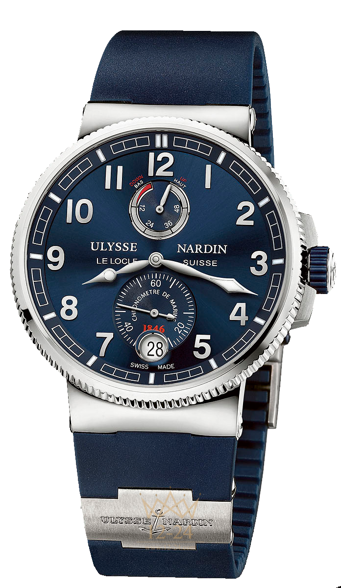 НАРУЧНЫЕ ЧАСЫ Marine Chronometer Manufacture 43мм Калибр UN-118 Автоподзавод малые секундные стрелки и индикатор запаса хода Корпус из титана/стальной корпус . 43мм водонепроницаемость 100 m Голубой циферблат Каучуковый ремешок или браслет из титана