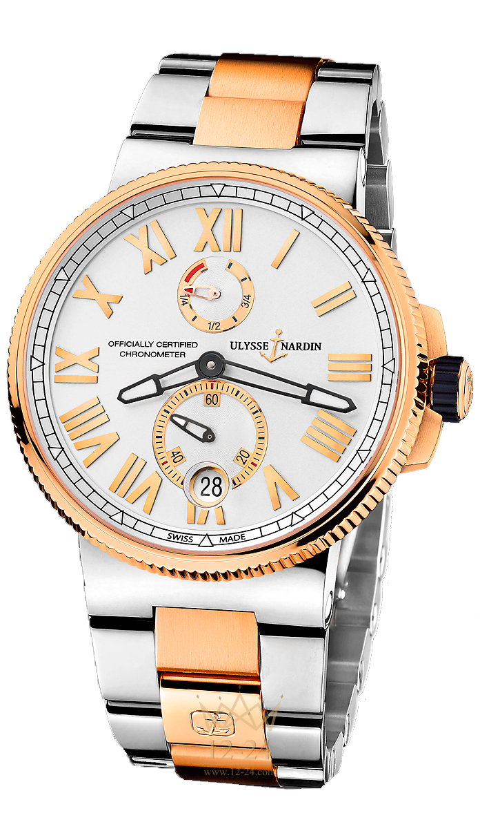 НАРУЧНЫЕ ЧАСЫ Marine Chronometer Manufacture 45мм Калибр UN-118 Автоподзавод малые секундные стрелки и индикатор запаса хода Титановый корпус/корпус из золота. водонепроницаемость 200 m Серебристый циферблат римские цифры Браслет из 18-каратного золота