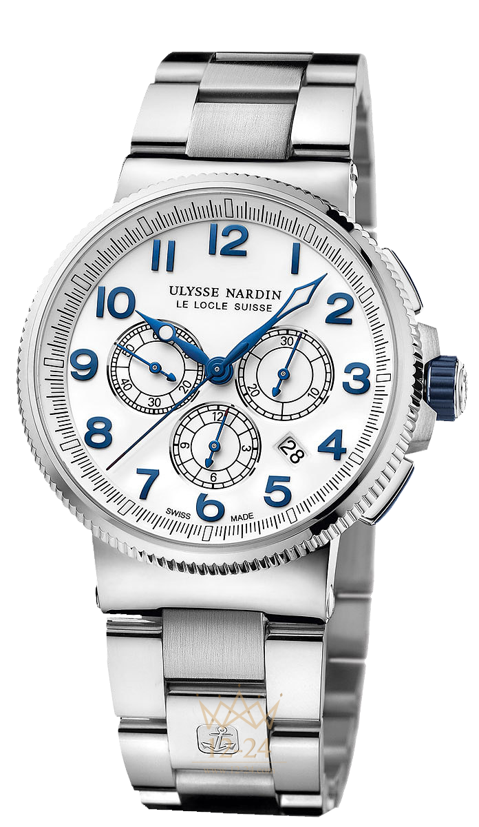 НАРУЧНЫЕ ЧАСЫ Marine Chronograph Manufacture Калибр UN-150 Автоподзавод Корпус из титана/стальной корпус . 43мм водонепроницаемость 100 m Белый циферблат арабские цифры Сатиновый ремешок со стальной застежкой