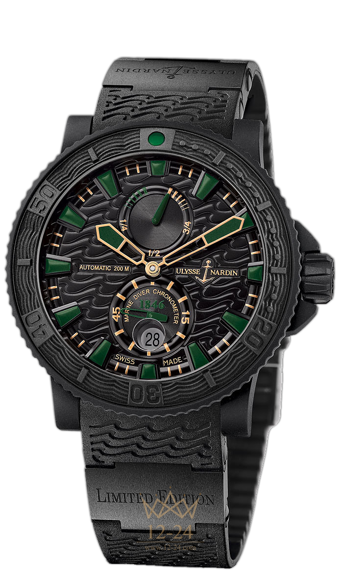 НАРУЧНЫЕ ЧАСЫ Black Sea / Blue Sea. Созданы специально для тех, кто занимается водными видами спорта. Стальной корпус диаметром 45.8мм, черный циферблат с зелеными метками, калибр 11½" UN-26. Автоподзавод, малые секундные стрелки, индикация запаса хода, водонепроницаемость 200 метров, каучуковый ремешок или керамический браслет.
