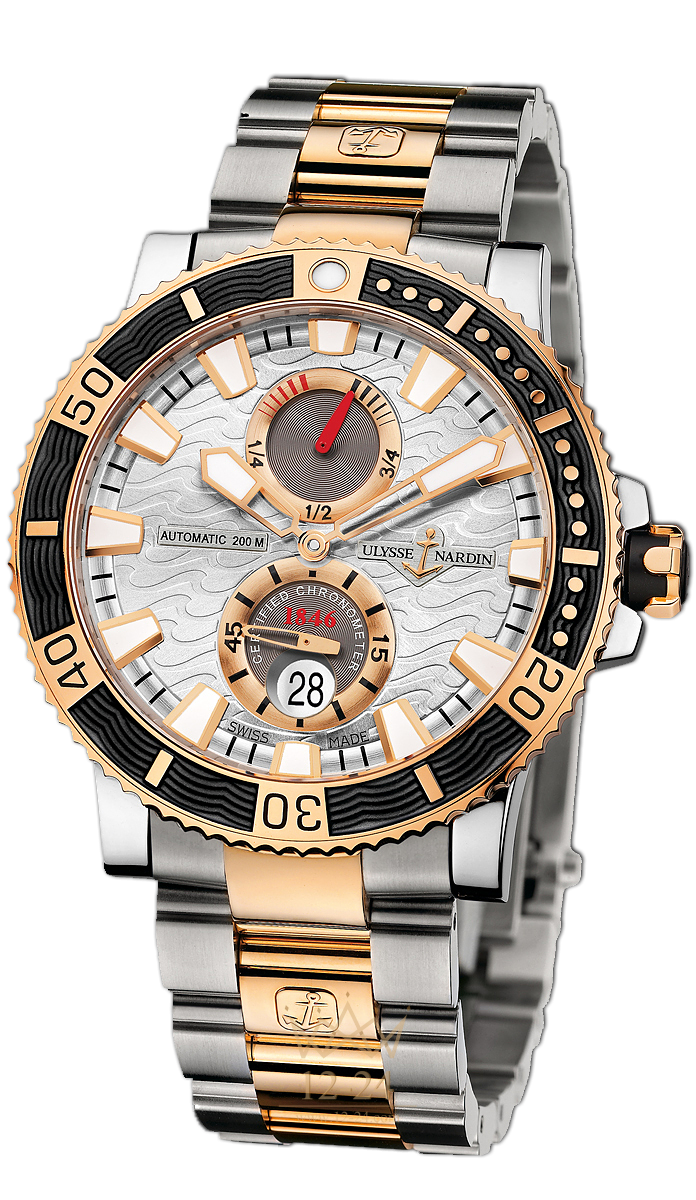 НАРУЧНЫЕ ЧАСЫ Marine Diver Titanium. Калибр 11½" UN-26. Автоподзавод, малые секундные стрелки, индикация запаса хода. Корпус из титана/корпус из золота диаметром 45мм, водонепроницаемость 200 метров, серебристый циферблат, браслет из 18-каратного золота.