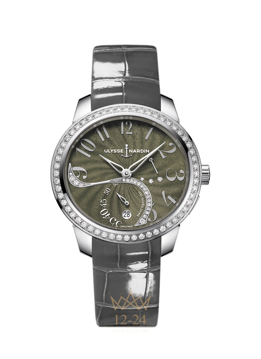 Серый эмалевый циферблат выполнен в технике Grand Feu.