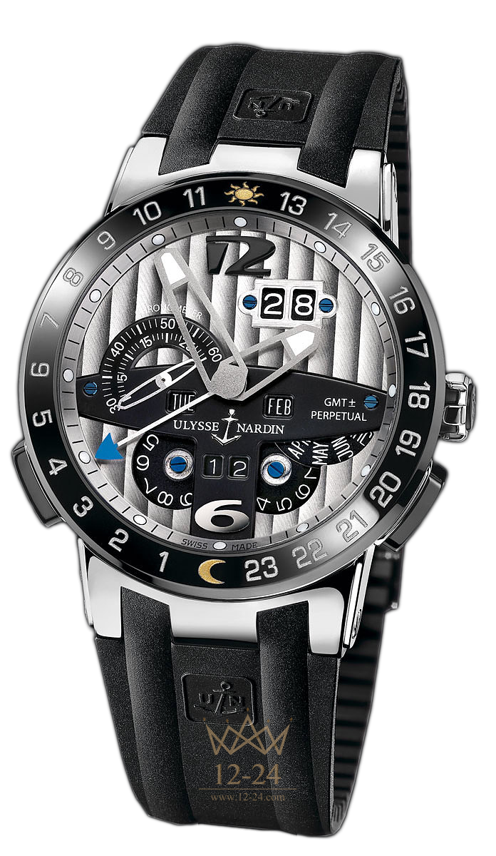 Это часы с высокотехнологичным вечным календарем, а также с индикацией времени второго часового пояса. Лимитированная серия 500 экземпляров. Корпус из платины/керамический корпус диаметром 43мм. Белый циферблат. Калибр 13¼" UN-32. Водонепроницаемость 100 метров. Каучуковый ремешок или керамический браслет.