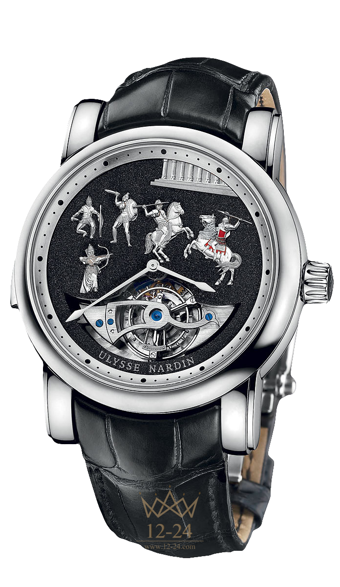 Александр Великий вдохновил Ulysse Nardin на создание данной модели. Вестминстерский бой производится 4 гонгами, каждый из которых имеет разную тональность (ми-до-ре-соль). Все компоненты механизма украшены вручную. Специальная ограниченная серия в 50 экземпляров. Корпус из 18-каратного белого золота. Материал циферблата — синтетический черный алмаз. Запас хода около 70 часов. Ручной завод. Водонепроницаемые до 30 метров.