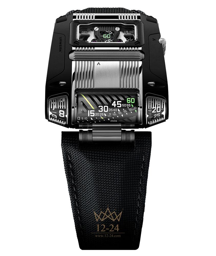 Показания: прыгающие часы, ретроградные линейные минуты, цифровые минуты, цифровые секунды.