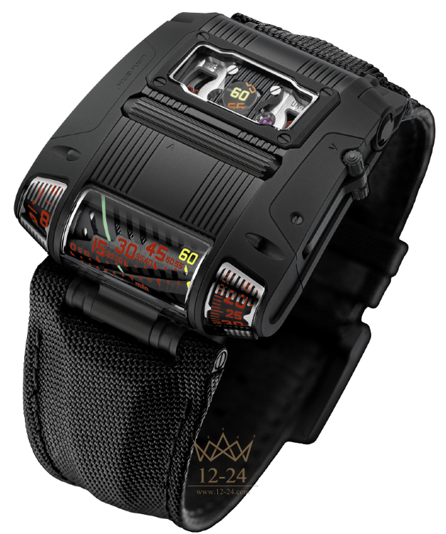 Показания: прыгающие часы, ретроградные линейные минуты, цифровые минуты, цифровые секунды.