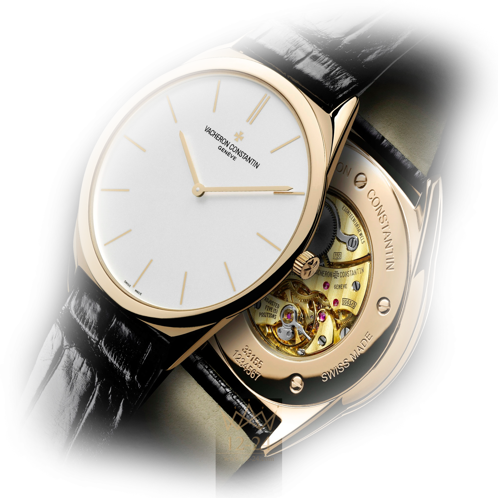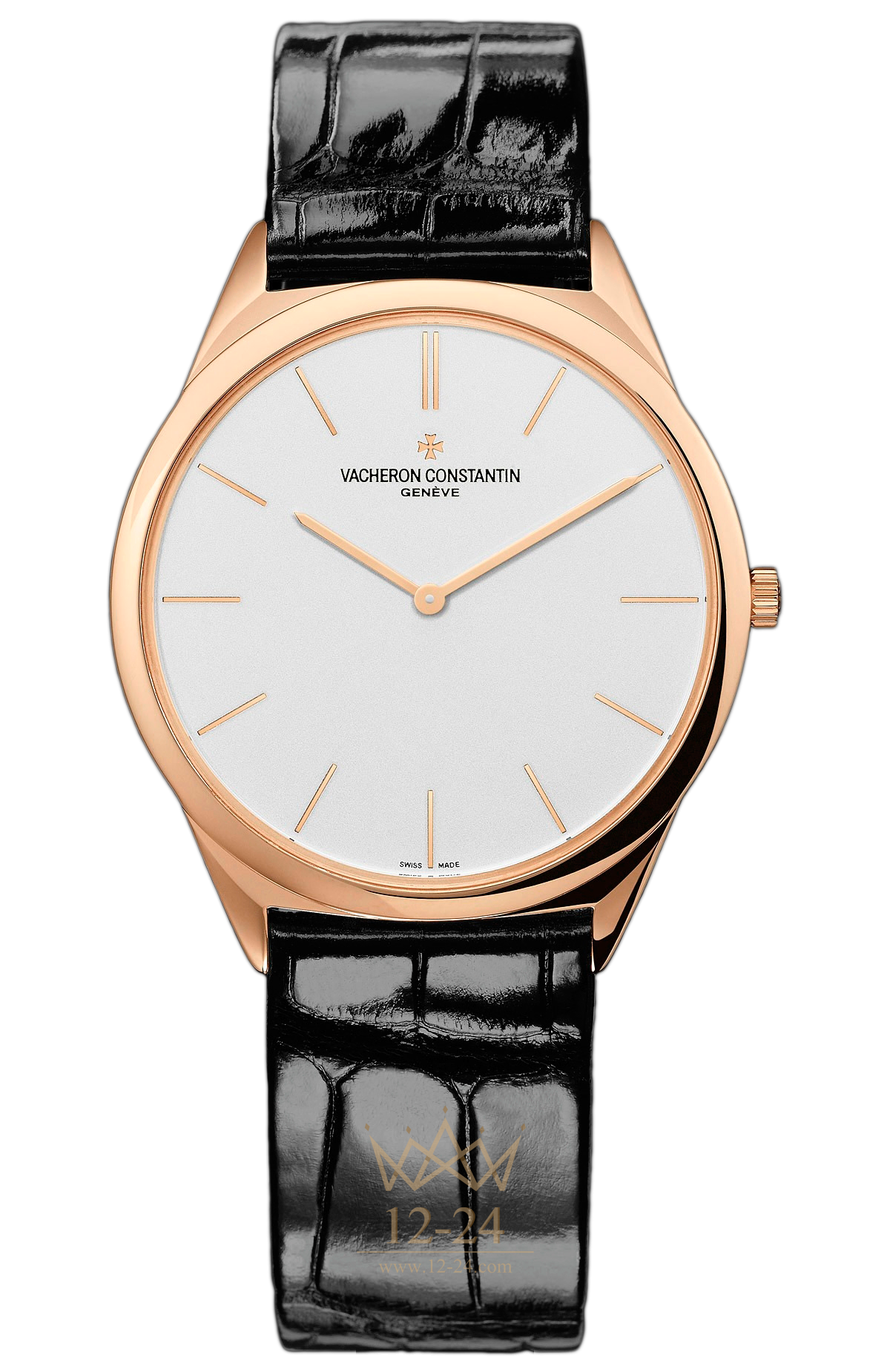 Знаменитая мануфактура отдала дань своему историческому наследию, выпустив эту модель под названием названием «Historique Ultra-fine 1955». Дело в том, что в 1955 году Vacheron Constantin вызвали ажиотаж в часовом мире, представив новый калибр 1003, который стал самым тонким в мире часовым механизмом (1.64 мм). Сейчас мануфактура облачила его в подчеркнуто современный обтекаемый корпус из розового золота толщиной всего 4,1 мм, при этом сам механизм также выполнен из этого благородного металла. На строгом циферблате нет ничего лишнего: только центральные стрелки часов и минут, а также полированные накладные часовые метки.