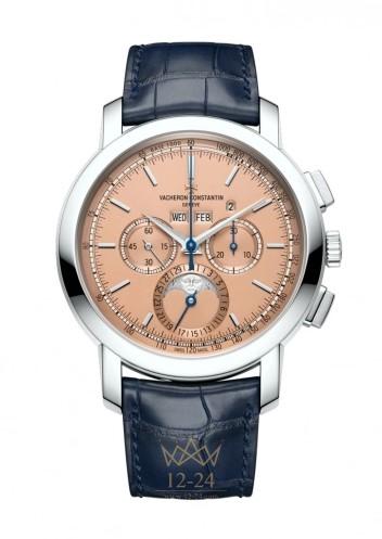 В этой уникальной модели из платины 950 пробы присутствуют два усложнения высокого уровня: хронограф с колонным колесом и вечный календарь, которому не потребуется никаких корректировок вплоть до 2100 года. Вечный календарь отображает фазы Луны на звездном небе из платины 950 пробы, на котором сменяют друг друга две трехмерные луны. Кроме того, посредством тахиметрической шкалы, нарисованной на циферблате, и центральной стрелки хронографа можно определять среднюю скорость движения.