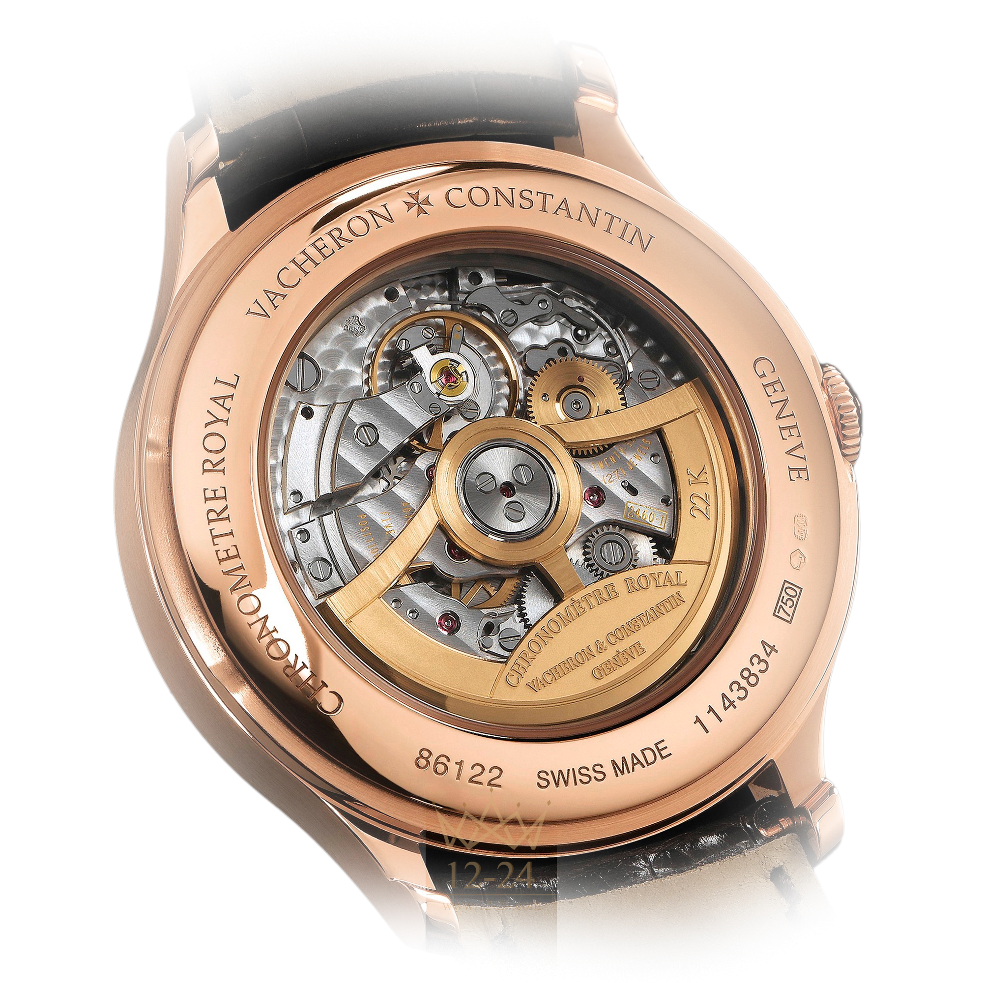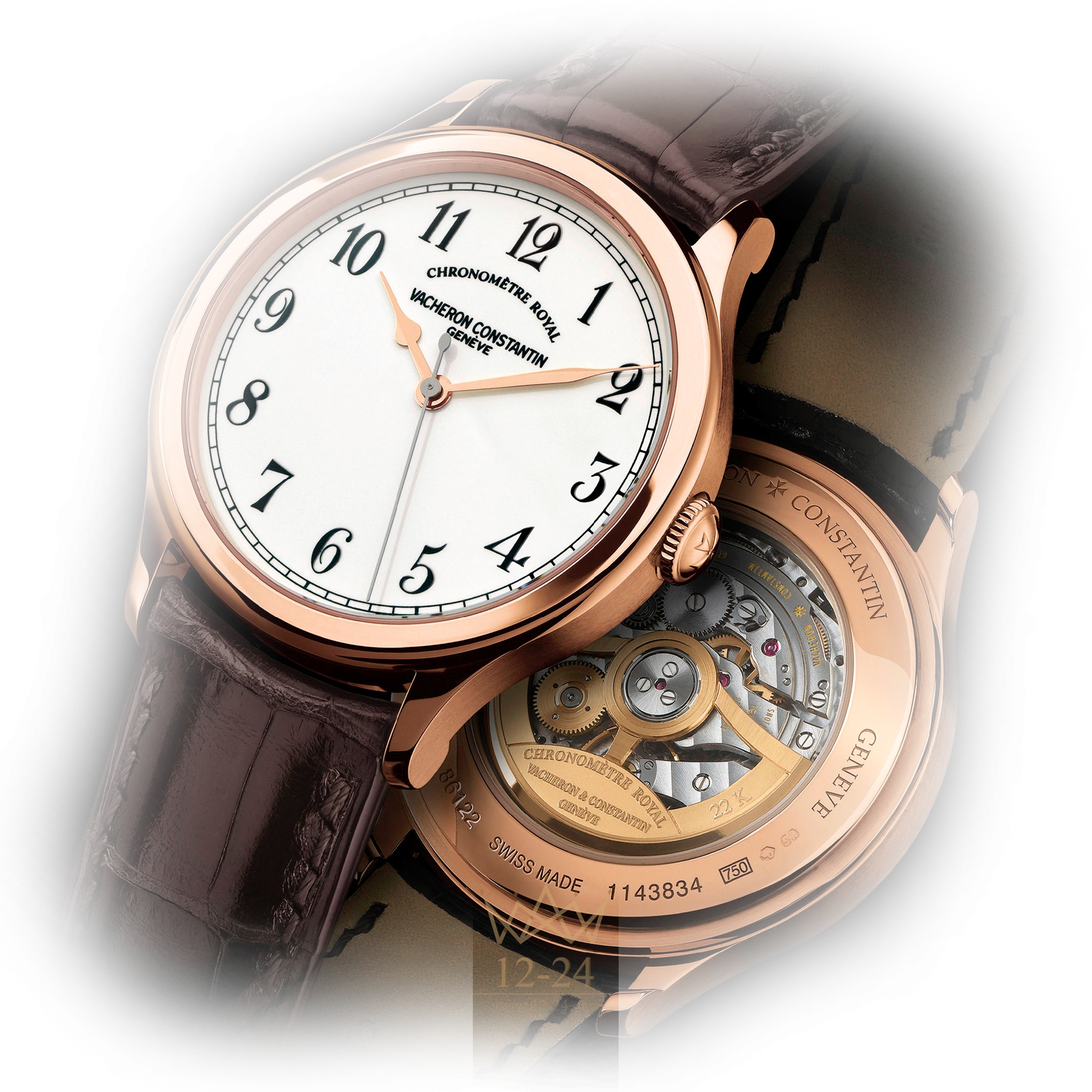 Линия “Historiques”, посвященная богатейшему наследию Vacheron Constantin, дает новую жизнь моделям, символизирующим дух и технологии бренда, благодаря современным версиям прославленных часов. Как торговый знак, зарегистрированный в 1907 году, Chronomètre Royal переживает второе рождение в 2007. Классический, элегантный корпус из 18-каратного розового золота диаметром 39 мм отполирован с боковой стороны и увенчан сферической заводной головкой. В корпус, обладающий водонепроницаемостью на глубине до 30 метров, вставлено слегка выпуклое сапфировое стекло с анти-бликовым покрытием. Прозрачная задняя крышка корпуса позволяет любоваться великолепной отделкой калибра 2460 SCC нового поколения, разработанного и произведенного Vacheron Constantin.
