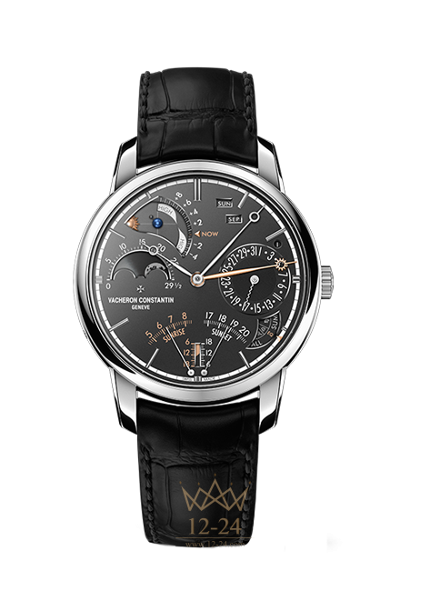 Уравнение времени в реальном режиме – очень редкая вследствие своей сложности функция – обеспечивает удобную считываемость показаний истинного солнечного времени с помощью второй коаксиальной минутной стрелки. Для точной индикации уравнения времени Vacheron Constantin разработал «тропическую» колесную передачу, отражающую тропический год, с которым синхронизирована стрелка солнечного времени. Это настоящий шедевр часовой механики, ставший предметом патентной заявки.