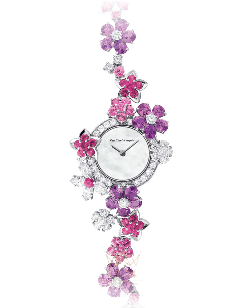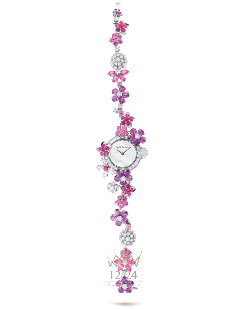 Безель, заводная коронка и браслет часов инкрустированы 149 бриллиантами весом около 5,99 карат и 88 сапфирами весом около 16,26 карат